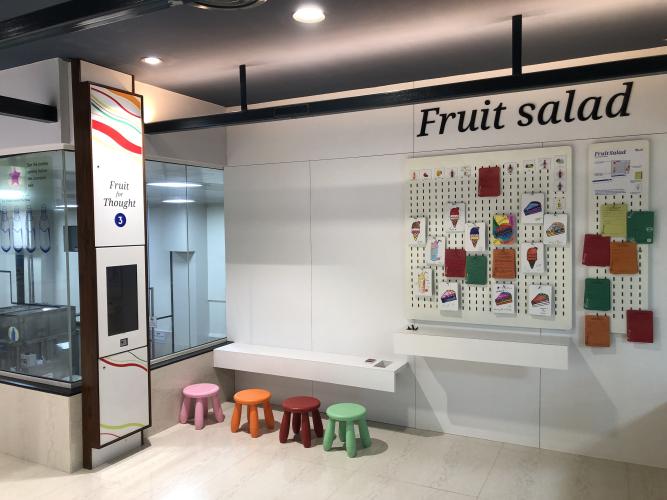 The "Fruitland" as it is called, allows a multi-sensory experience through sound, smell and visual treats to its visitors. As the factory experience is designed in a manner where the starting point begins with selection of fruit and then leads through the journey of the fruit, it showcases an engaging 3D animation depicting its journey from the farm to the consumer. Lastly a quiz helps visitors win points and get a chance to redeem a discount at the retail counter.